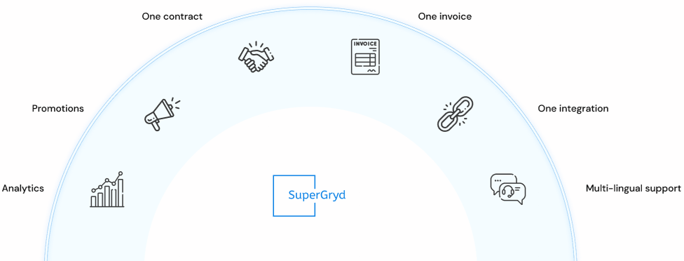 SuperGryd manages the complexity of contracts, product integrations, and updates so you can focus on growing along with your users